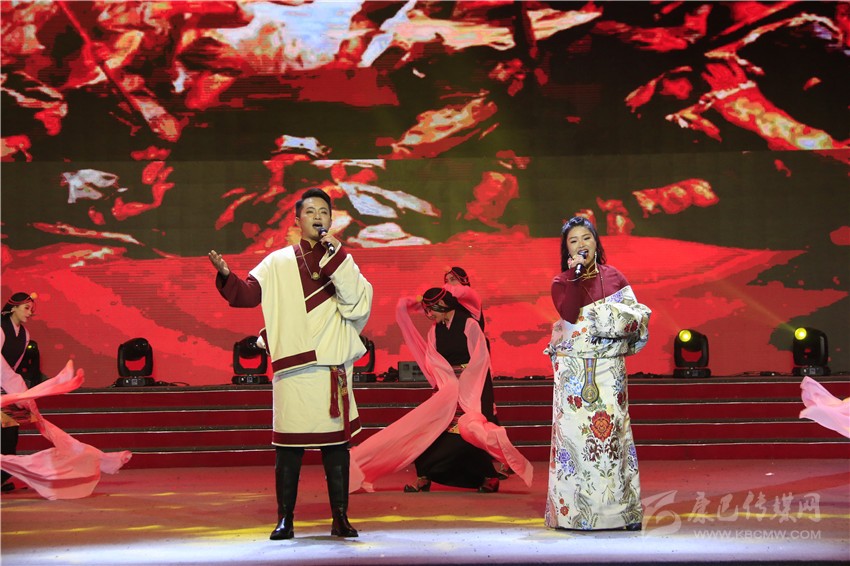 隨后以三個(gè)“新”字為主題的篇章,更是彰顯了民族風(fēng)情、甘孜風(fēng)格、時(shí)代風(fēng)貌。挖掘民族素材、彰顯民族文化,甘孜歌舞團(tuán)以格薩爾傳說為“藍(lán)本”,推陳出新表演的《格薩爾仲肯》,讓民族文化熠熠生輝;民族文化需傳承,少年強(qiáng)則甘孜強(qiáng)。德格縣中學(xué)少兒則噶表演的《吉祥頌》,讓人感到后生可畏,贏得陣陣掌聲;富有激情的朗誦、珠聯(lián)璧合的配樂,《甘孜與祖國相約出發(fā)》讓現(xiàn)場(chǎng)觀眾真切地感受到了盛世中華,真情贊美幸福美好的新生活;歌曲大聯(lián)唱《如歌歲月》通過不同時(shí)代的代表性歌曲,唱出了甘孜兒女愛祖國、愛家鄉(xiāng),感黨恩、思奮進(jìn)的真摯情懷;由州歌舞團(tuán)和爐霍、丹巴、德格、巴塘等縣藝術(shù)團(tuán)聯(lián)袂上演的《幸福大家庭》,既有漢族歌舞《祝福祖國》、藏族舞蹈《放牧人》、蒙古族舞蹈《送親》、彝族舞蹈《彝家情》、回族舞蹈《花兒》,更是彰顯了民族團(tuán)結(jié)的大主題,為我州創(chuàng)建全國民族團(tuán)結(jié)進(jìn)步示范州擂鼓助威。