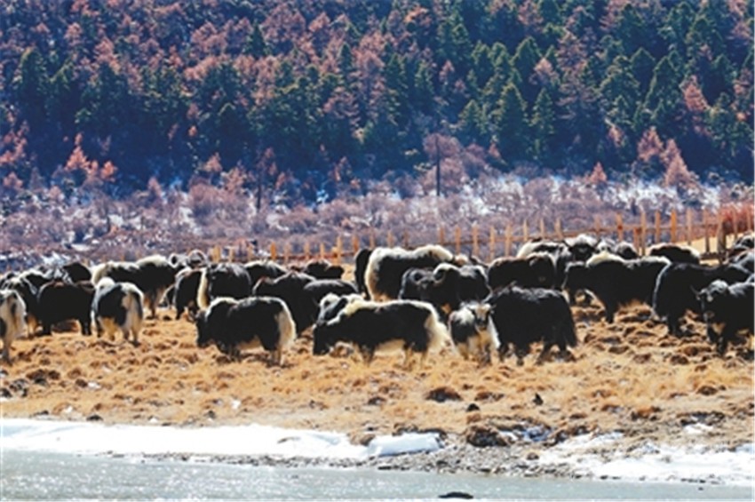 森林、草甸、河流、牦牛還有皚皚白雪。新華社記者 陳天湖 攝