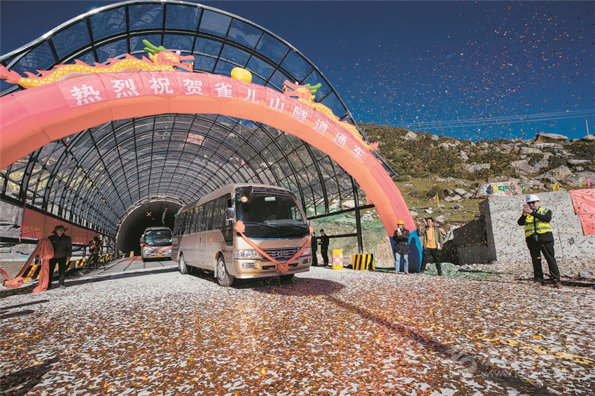 雀兒山隧道通車(chē)典禮現(xiàn)場(chǎng)。