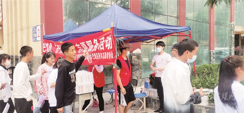 圖為巴塘縣志愿者為考生服務(wù)。