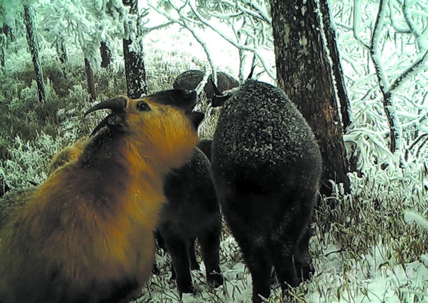 憨態(tài)可掬的國寶大熊貓、有“高山精靈”之稱的雪豹、成群的扭角羚……這些珍稀動(dòng)物畫面,出現(xiàn)在了四川崇州鞍子河布設(shè)的紅外相機(jī)里。近日,筆者從大熊貓國家公園崇州管護(hù)總站了解到,工作人員在大熊貓國家公園鞍子河區(qū)域內(nèi)布設(shè)了11個(gè)監(jiān)測點(diǎn)位進(jìn)行紅外線相機(jī)監(jiān)測,幾天前取回的紅外線相機(jī),記錄下了從2020年10月至今年6月底的監(jiān)測畫面。