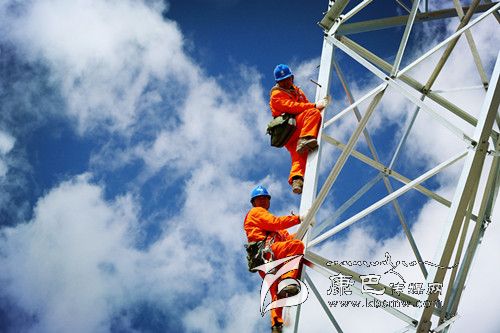 連日來, 國網四川甘孜供電公司,為確保全州輸電設施供電穩(wěn)定,加強了在惡劣氣候下巡查線路力度,保障了不同電壓等級線路的可靠供電。圖為5月13日,該公司所轄的鄉(xiāng)城縣供電公司員工,在海拔4705米的馬鞍山地域,登塔檢查線路。 楊建慶 攝