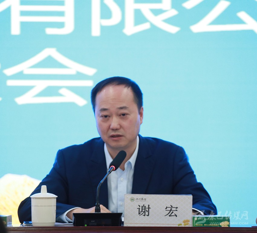 甘孜農商銀行黨委書記、董事長謝宏作報告。