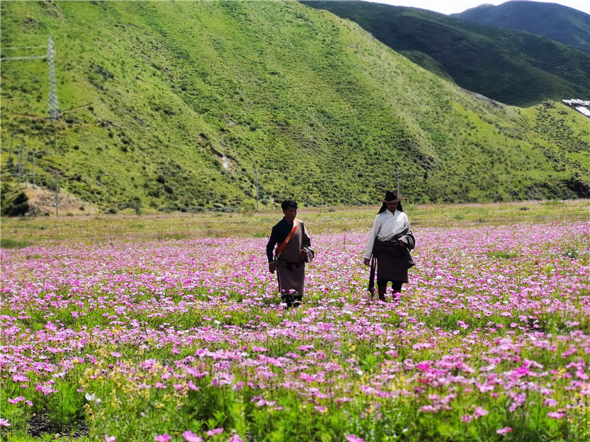溫江援建的洛若金礦修復工程(人工飼草基地),使曾經(jīng)的荒地變身花海。