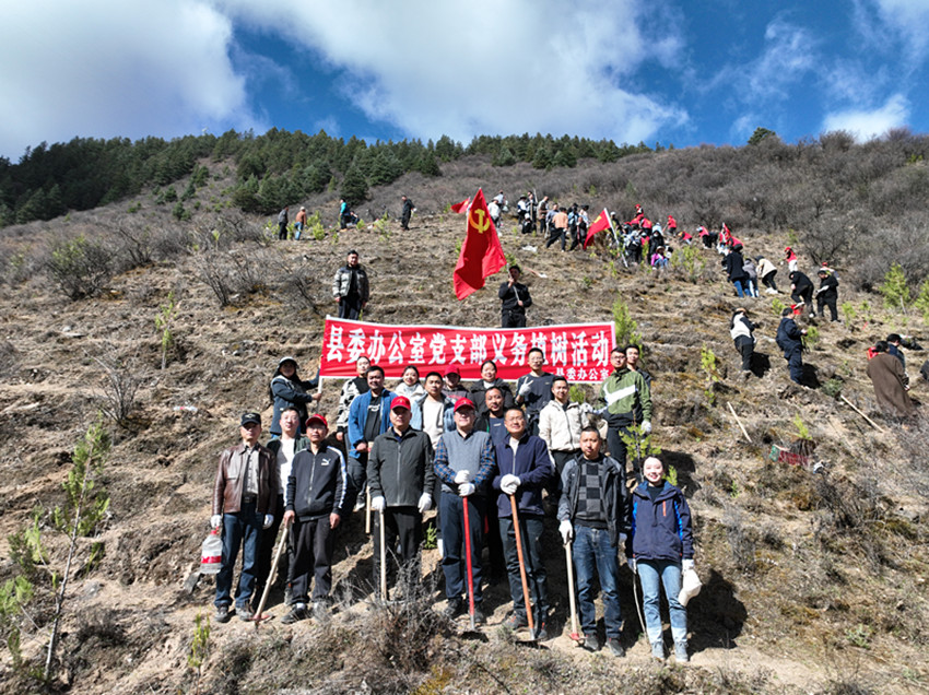 日前,石渠縣開展了“我為黨旗添光彩,全民義務植樹造林”活動,為生態(tài)石渠建設再添新綠。