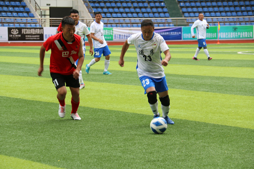 上午9時,道孚隊與巴塘隊的季軍爭奪戰(zhàn)正式開打,現(xiàn)場助威的觀眾熱情高漲,為各自支持的球隊吶喊助威。比賽一開始雙方球員迅速進入狀態(tài),在中場你來我往,足球在各位球員的腳下輾轉(zhuǎn)騰挪,經(jīng)過激烈比賽,上半場巴塘隊1:0暫時領(lǐng)先道孚隊。