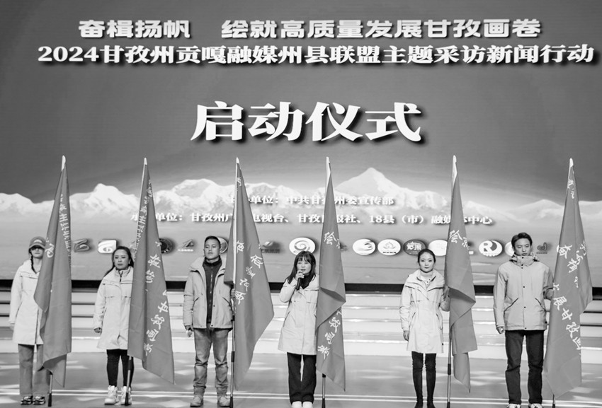本網(wǎng)訊 為著力建設(shè)習(xí)近平文化思想涉藏地區(qū)生動(dòng)實(shí)踐地的“甘孜樣板”,奮力打造中華文明和康巴文化傳播的“甘孜窗口”,努力創(chuàng)造宣傳思想文化工作的“甘孜品牌”,2月28日,以“奮楫揚(yáng)帆 繪就高質(zhì)量發(fā)展甘孜畫(huà)卷”為主題的甘孜州貢嘎融媒州縣聯(lián)盟主題采訪(fǎng)新聞行動(dòng)在州廣播電視臺(tái)文藝演播大廳啟動(dòng),一場(chǎng)圍繞中心、服務(wù)大局的新聞實(shí)踐,分批推進(jìn)、貫穿全年的統(tǒng)一行動(dòng),新聞戰(zhàn)線(xiàn)協(xié)同聯(lián)動(dòng)、各展其長(zhǎng)的創(chuàng)新探索至此拉開(kāi)帷幕。