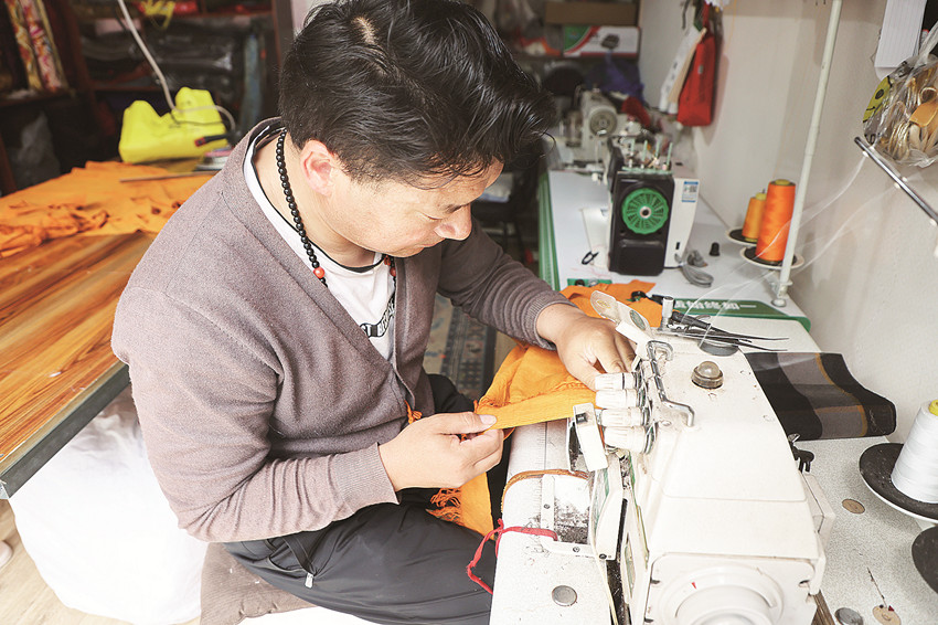 在白玉縣,像扎西澤仁這樣的傳統(tǒng)手藝人還有很多,他們拋開浮華喧囂,耐心深耕手工制作領域。如今登龍服飾正逐漸成為一張亮麗的名片,為當?shù)氐奈幕瘋鞒泻徒?jīng)濟發(fā)揮著重要作用。