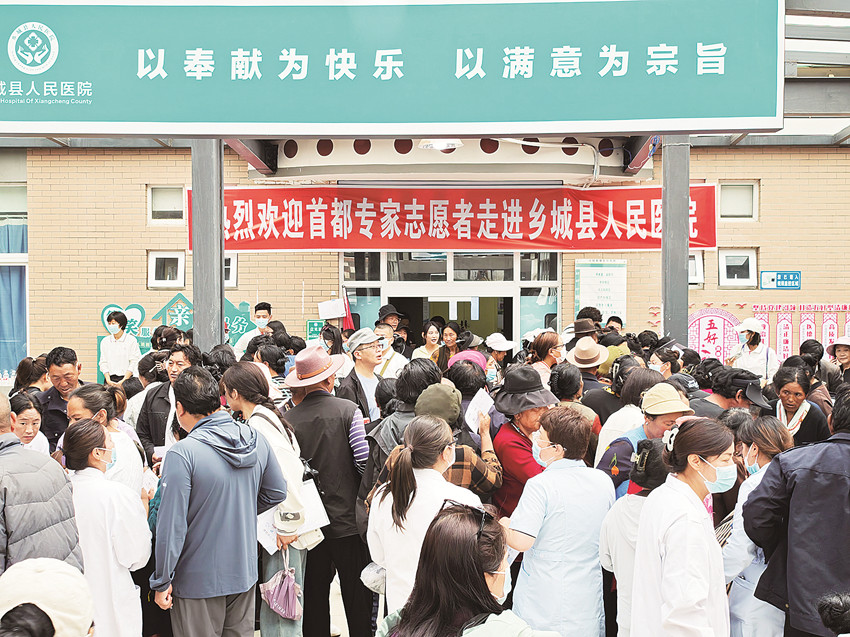 在鄉(xiāng)城縣人民醫(yī)院,聽聞有北京的專家前來義診,當(dāng)?shù)厝罕姖M懷期待而來。在當(dāng)?shù)蒯t(yī)生的全力協(xié)助下,專家們耐心細(xì)致地問診、檢查。面對患者的困惑,專家們用通俗易懂的語言給予清晰明了的解答。義診現(xiàn)場氣氛熱烈,患者絡(luò)繹不絕。
