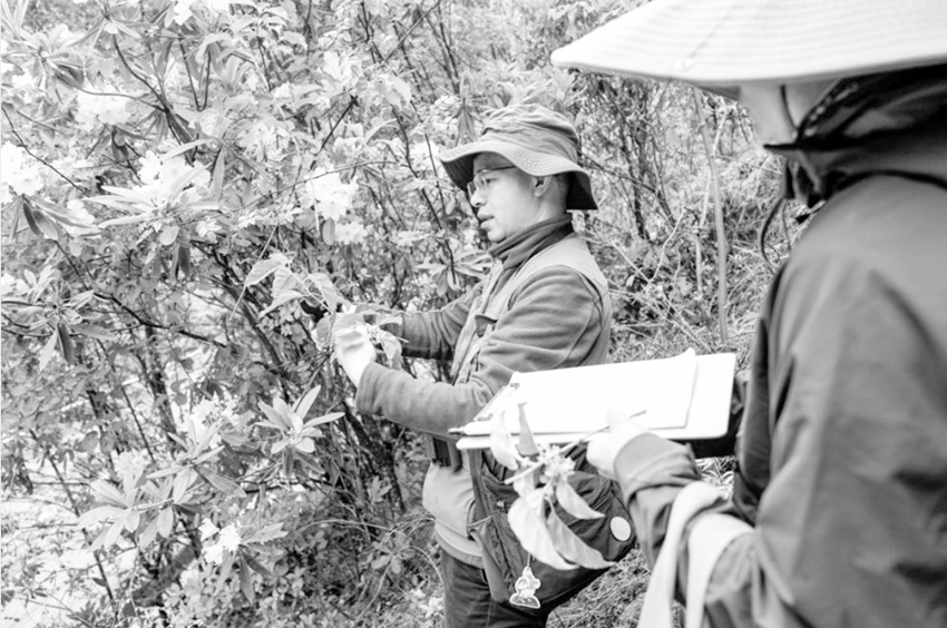 回到山腳,張遠彬正在打開植物“盲盒”。“這里海拔差別大,杜鵑的種類特別多,這是以前沒有記錄到的。”張遠彬直呼“驚喜”,邊用手機拍下形態(tài),邊口述特征讓一旁的助手記錄。