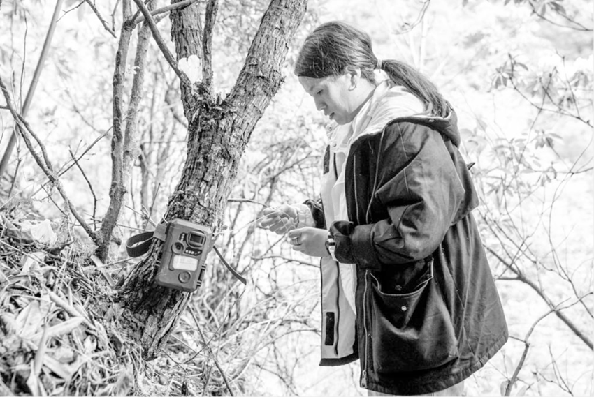 陳妍君安放紅外相機。 李強 攝