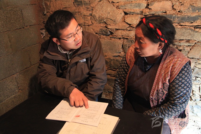 雅江縣灣地溝村第一書(shū)記與貧困村民交流。