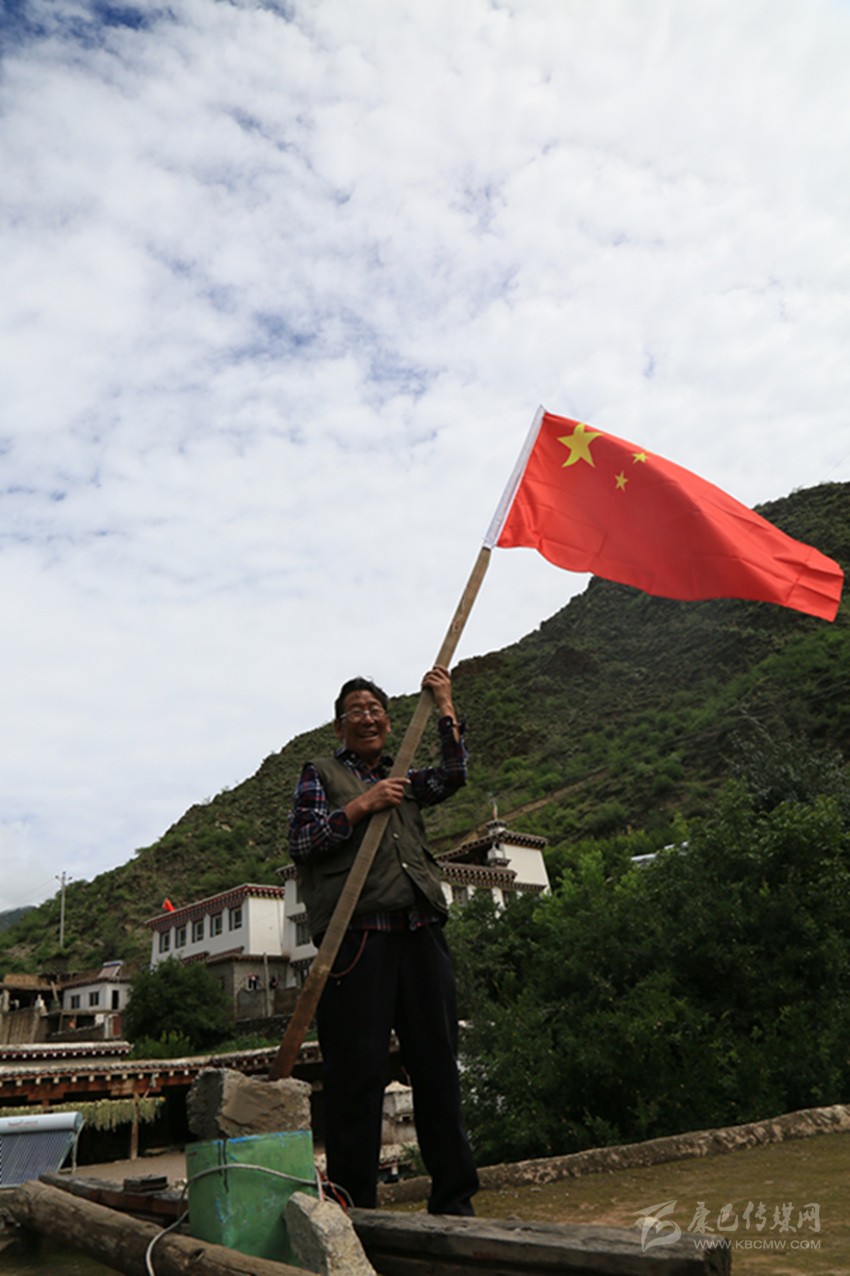 8月5日早晨7時(shí)50分,鬧鈴響起。巴塘縣蘇哇龍鄉(xiāng)絨岔絨村73歲的藏族老人翁修從臺(tái)柜上拿起疊得整整齊齊的國(guó)旗,登上樓頂,把國(guó)旗穿進(jìn)旗桿后,靜靜地等待著;8時(shí),老人揮舞國(guó)旗,高唱國(guó)歌:“起來(lái),不愿做奴隸的人們……”