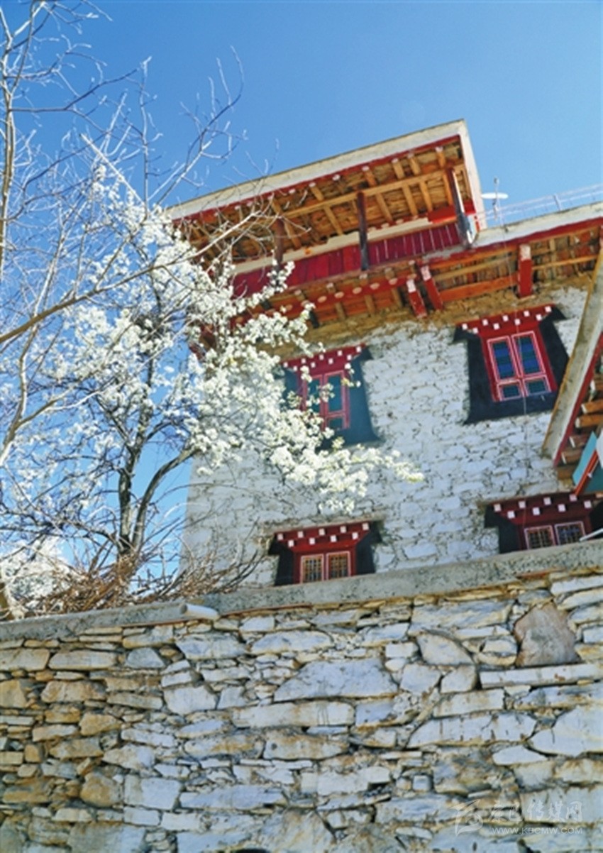 步入藏寨,藏式花紋的窗欞外懸掛著火紅的辣椒和金黃的玉米。朱紅色的大門上刻著藏式圖騰,客廳里色彩鮮艷、雕龍畫鳳的藏式餐桌上則擺滿了當(dāng)?shù)厥a(chǎn)的時(shí)令瓜果。室內(nèi)房間干凈整潔,有寬大的床鋪、客廳和洗手間,手捧香甜的酥油茶,倚窗而立,樹葉隨風(fēng)擺動(dòng),似乎在訴說著少女心中對(duì)外面世界的向往。