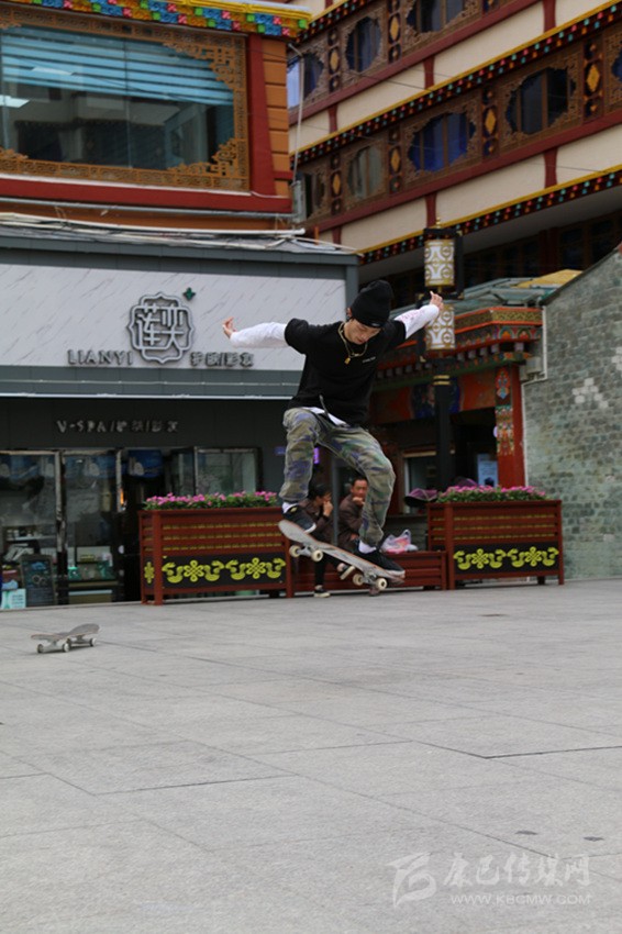 6月22日,世界滑板日,康定市情歌廣場,一群滑板少年舉著“GOTTA’318”大旗,正在演繹精彩。他們時而團(tuán)隊作業(yè),時而單兵作戰(zhàn),時而爭相競技,時而相互逗樂。當(dāng)他們舞動旗幟,蛇形而行,呼嘯而來,你會感受到蓬勃的青春氣息撲面而來;當(dāng)他們帶板直上滑桿,倏忽而過時,你會在那一剎那感到記憶一陣空白,然后發(fā)出一聲驚嘆;當(dāng)他們瞬間起跳,在空中360度轉(zhuǎn)體,然后像雄鷹一樣翱翔時,你會感覺歲月易老,對青春只有追憶;而當(dāng)他們競技“爭高”“望遠(yuǎn)”時,你會感受到那鍥而不舍的奮斗精神充盈你的脈管……