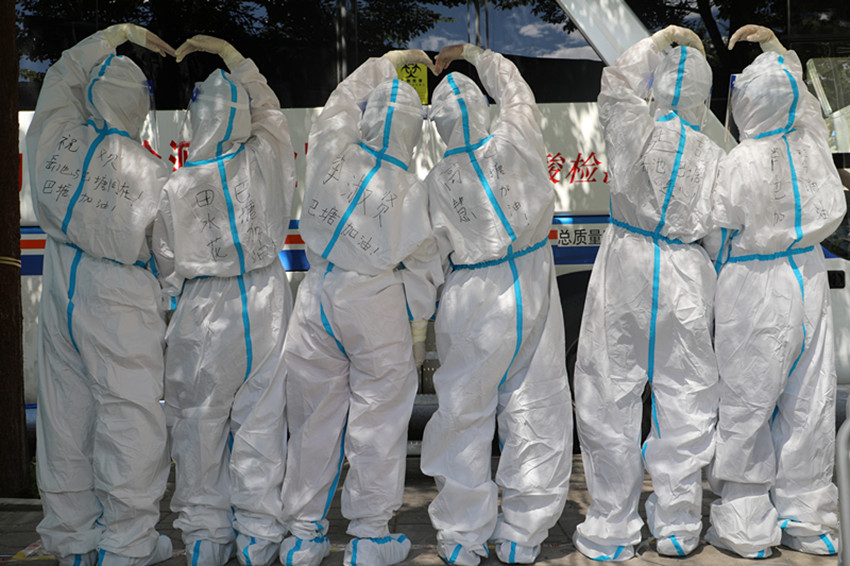 圖為援巴醫(yī)療隊隊員比愛心為巴塘加油。
