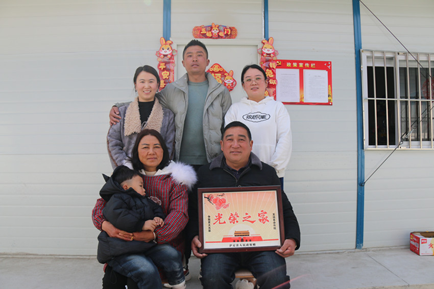 吃晚飯前,甘啟均叫上家里6口人,在板房門前拍了一張“全家?!?,照片中三代同框緊緊相偎,“光榮之家”的牌匾格外亮眼。