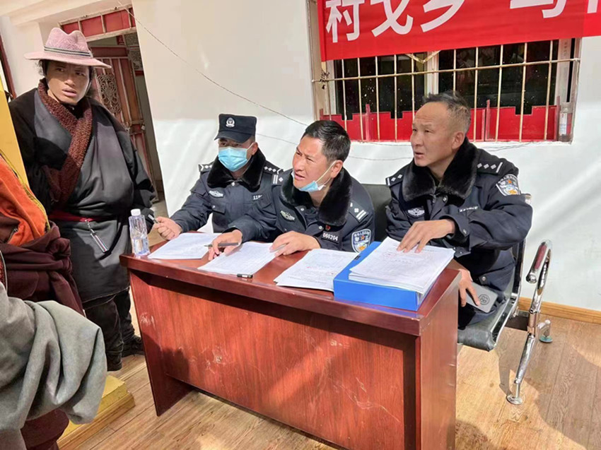數(shù)十次辛苦奔波化解十余年積怨。2018年在村戈鄉(xiāng)雄拉村下鄉(xiāng)期間,了解到該村有幾戶村民存在糾紛,積怨多年,如不及時(shí)進(jìn)行處理,可能釀成矛盾進(jìn)一步激化。作為所長(zhǎng)尼瑪澤仁立即深入當(dāng)事人旦增彭措家中,經(jīng)過長(zhǎng)達(dá)4個(gè)小時(shí)的促膝長(zhǎng)談,旦增彭措終于訴出“苦水”。原來(lái),旦增彭措和另一戶村民家因?yàn)槭畮啄昵暗囊粯缎∈?,雙方各執(zhí)一詞,互不相讓,先后發(fā)生了多次摩擦,期間雖然有過協(xié)商,但未能開誠(chéng)布公,消除積怨。