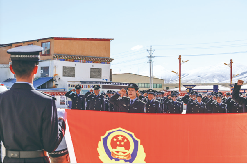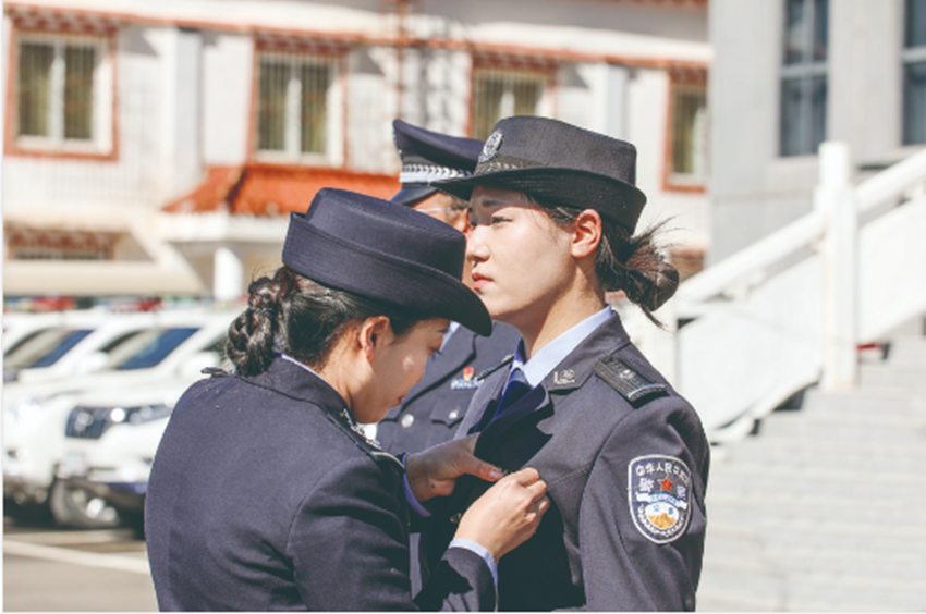 以父之名,開啟藏藍人生。2022年,大學畢業(yè)的馬怡琳通過公開招考成為石渠縣公安局的一名民警,回到了這片“父親的草原”。工作兩年來,馬怡琳以扎實工作和優(yōu)異成績獲得大家的贊譽?!澳憧烧嫦衲愀赣H,干工作是一把好手??!”聽到父親生前的同事對自己的贊譽與認可,馬怡琳倍感自豪。