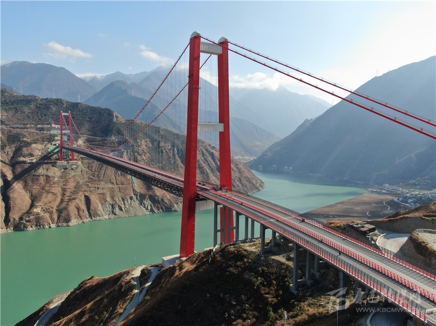 而瀘定大渡河大橋作為雅康高速全線“一橋一隧”重點(diǎn)控制性工程之一,是一座建設(shè)在高海拔、高地震烈度帶、復(fù)雜風(fēng)場及溫度場環(huán)境下的超大跨徑鋼桁梁懸索橋,全橋長1411米,主跨1100米,橋面至大渡河水面239米,被譽(yù)為“川藏第一橋”。