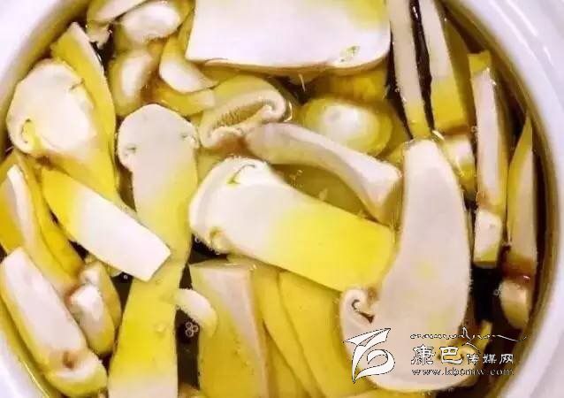 松茸土雞湯:新鮮松茸適量,去泥腳切片備用;土雞洗凈切塊,少油加姜片炒香雞塊,加入少許料酒去腥,加3片火腿,2升礦泉水入砂鍋滾沸去浮沫后,小火燉2小時(shí);起鍋前15分鐘加入松茸片即可。