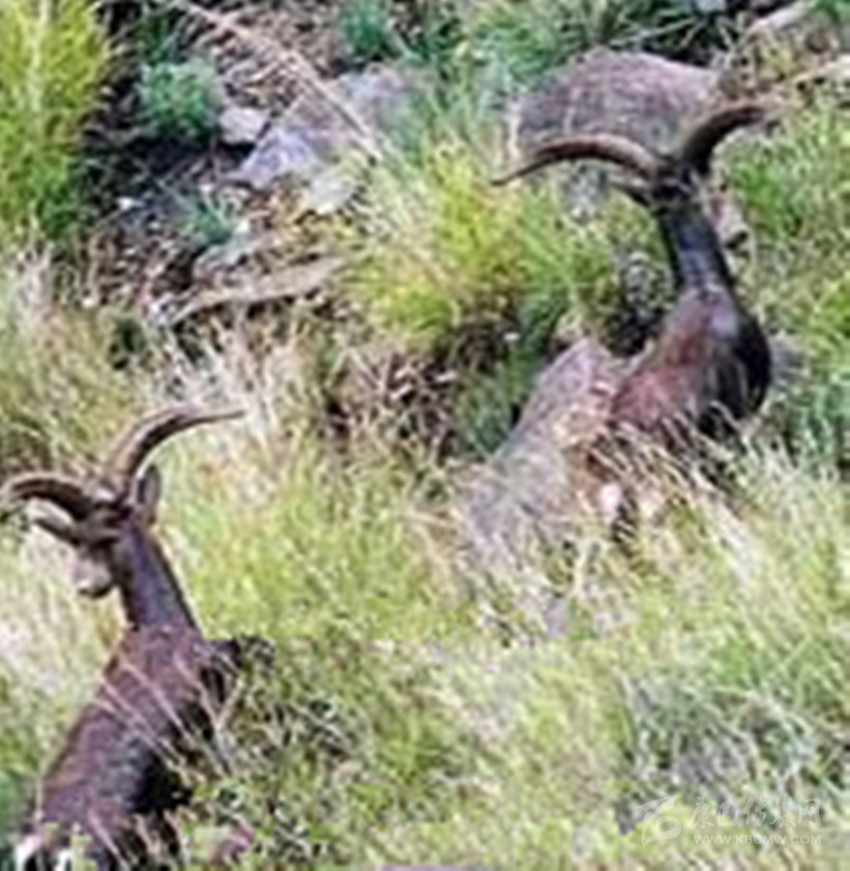 矮巖羊,偶蹄目牛科,生存在海拔2700-4000米灌叢、草甸、裸露巖石地帶,成年羊體重50-70公斤,體毛呈灰棕褐色,背腹交界處及四肢有明顯黑紋。