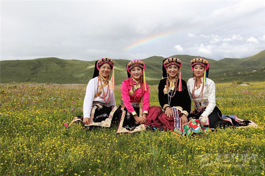 各種圖案的服裝面料在藏區(qū)應用廣泛,包括織物自身紋樣和后期裝飾紋樣。衛(wèi)藏一帶藏袍的背部等部位常貼繡“日月圖”或雍仲符“卍”字,此類藏族服裝稱為“甲規(guī)”,意為百歲老人服,現(xiàn)在年齡小的藏民也穿用。曲藝服飾中,常以宗教題材圖案進行裝飾,如佛教神舞服飾胸部的威猛金剛裝飾圖案。節(jié)日服飾中,裝飾圖案也被廣泛應用,如日喀則“杰諧”舞婦女服飾、江孜“果諧”舞婦女服飾的“十字”紋樣,阿里普蘭“鮮舞”婦女服飾中的龍紋、云紋等。
