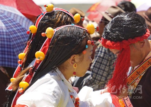 其實(shí)藏族人的審美很多同漢族不一樣,參加一場活動(dòng)她們會(huì)在頭發(fā)上占去大量的時(shí)間,編成非常多的辮子。