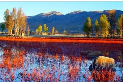 距稻城縣城金珠鎮(zhèn)28公里的桑堆小鎮(zhèn)風(fēng)景綺麗,在公路沿線的牧場開闊平展,河流平緩如鏡。遙望遠(yuǎn)處,在起伏的山巒間散落著村落、牧人、牛羊,呈現(xiàn)一派寧靜祥和的景象。公元1144年前,一世噶瑪巴·都松欽巴覺悟贊譽(yù):“我走遍藏區(qū),來到此地。這里風(fēng)景秀美,牧草豐茂,六畜興旺,佛光普照。我愿在此修建寺廟成就功德”。金秋十月的桑堆紅草灘總是讓你感覺膠卷不夠用?!?/p>