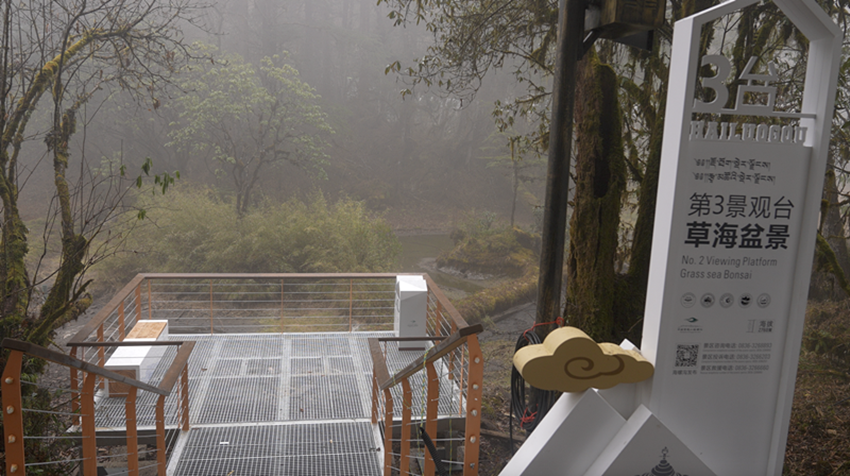 此外,在觀景臺(tái)搭建方面,除了恢復(fù)重建原有的老觀景平臺(tái),還新建了貢嘎回眸、貢嘎之心、金銀峰光等觀景平臺(tái),全方位彰顯蜀山群峰、萬(wàn)年冰川的美景。其中,貢嘎回眸、貢嘎之心觀景臺(tái)分別由貢嘎帽子云、景區(qū)logo演繹而成,十分吸“睛”。